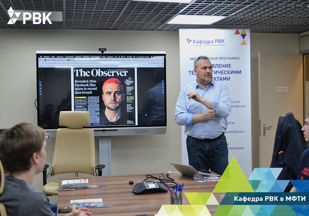 Директор по стратегическому развитию Pulsar Venture Capital Сергей Митрофанов представил собравшимся свой курс «Маркетинг инноваций», который преподается на кафедре РВК во втором семестре.