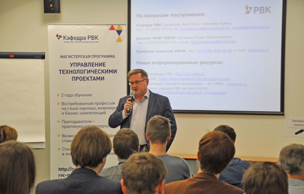 Среди выступающих были — преподаватель курса «Разработка нового продукта» Алексей Николаев, к. ф.-м. н., директор программы Intel по развитию технологического предпринимательства; преподаватели курса «Финансовые инструменты технологических рынков» Татьяна Кондратьева, специалист по операционной деятельности инвестиционных структур, и Сергей Суров, начальник инвестиционного отдела Российского научного фонда; преподаватель курса «Маркетинг инноваций» Сергей Митрофанов, имеющий более, чем 20-летний опыт работы в сервисных компаниях, создавший более 70 брендов в различных секторах бизнеса; Константин Виноградов, выпускник кафедры 2014 г., старший инвестиционный менеджер Runa Capital; Владислав Лукьянов, выпускник кафедры РВК 2015 г., бизнес-аналитик Foodfxo. ru; Анастасия Шевченко, студентка 5 курса, аналитик компании ABBYY и другие.